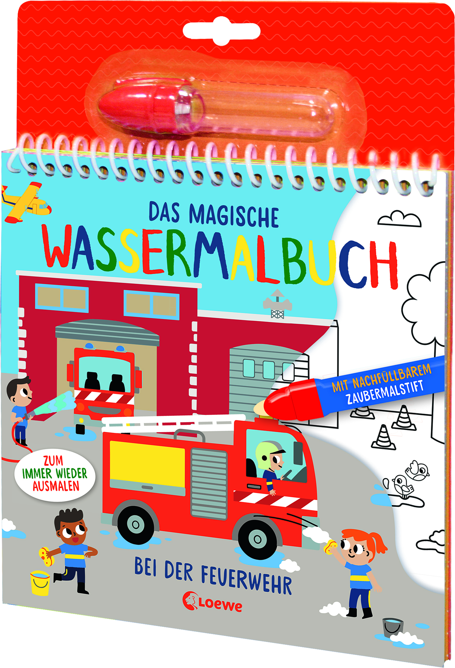 Wenn du den Stift aufdrehst und Wasser einfüllst, beginnt der Einsatz für die Feuerwehr: Fährst du mit dem Zaubermalstift über die Bilder, werden die spannenden Abenteuer der Feuerwehrleute in wunderschöne Farben getaucht. Und wenn die Seiten wieder getrocknet sind, kannst du die Magie erneut erleben!