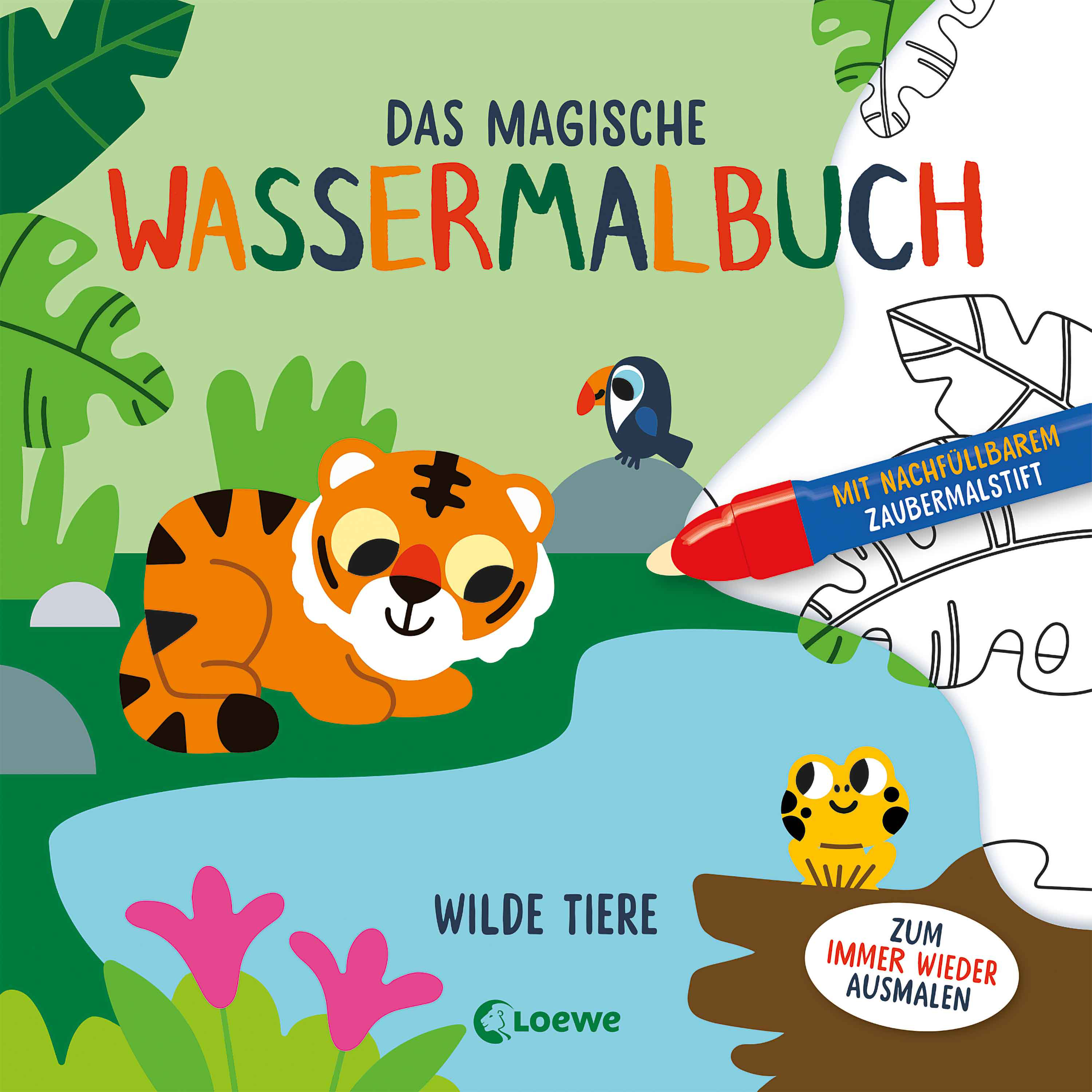 Wenn du den Stift aufdrehst und Wasser einfüllst, beginnt die abenteuerliche Reise ins Tierreich: Fährst du mit dem Zaubermalstift über die Bilder, erscheinen wunderschöne Farben und allerlei wilde Tiere. Und wenn die Seiten wieder getrocknet sind, kannst du die Magie erneut erleben!
