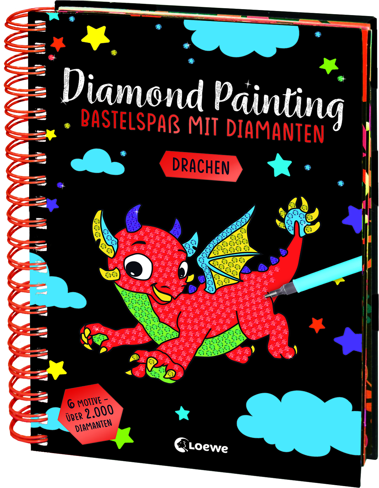 Enthalten sind 6 Motive, über 2.000 Diamanten und ein Applikator-Stift.