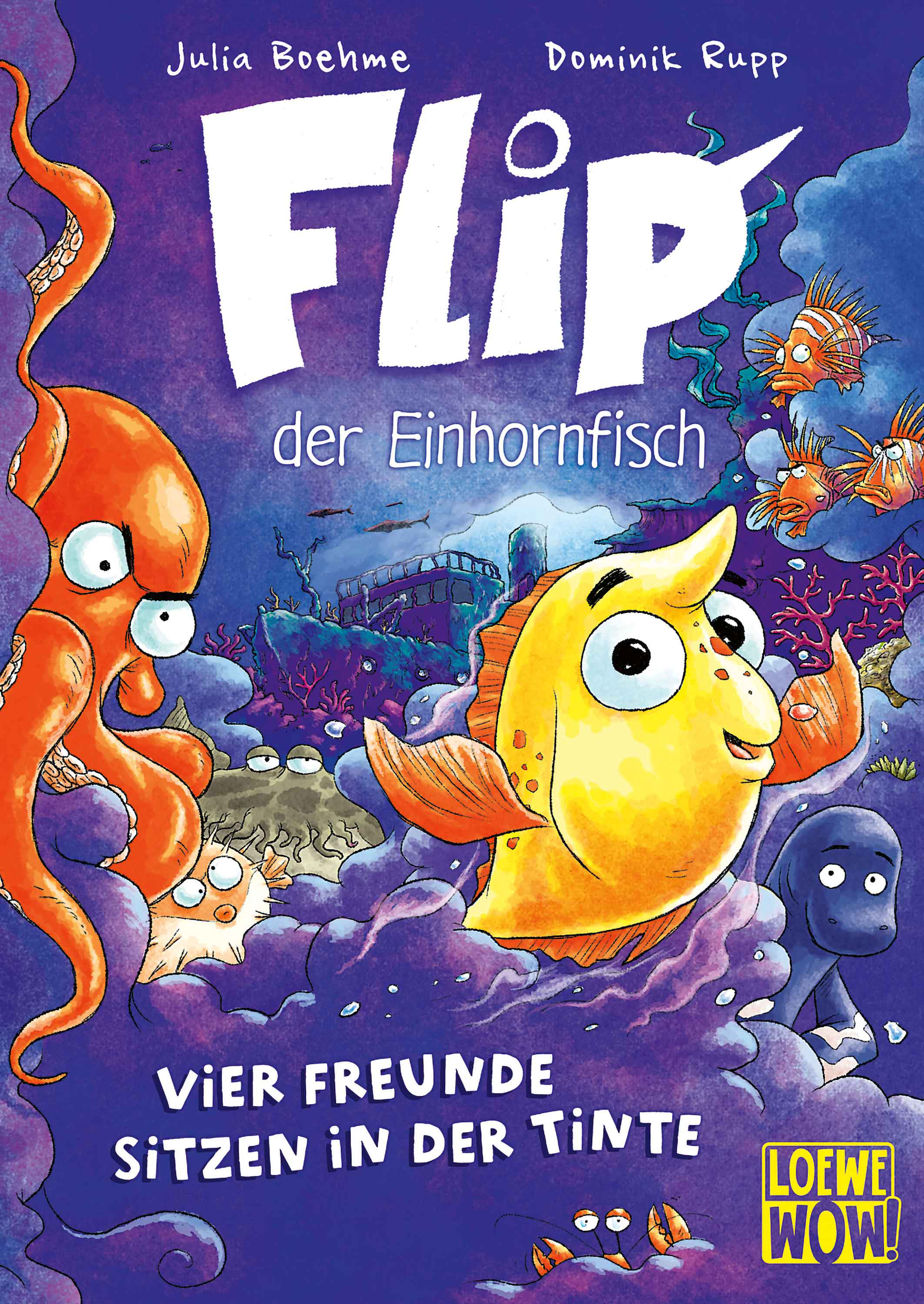 Loewe Wow! taucht in die Unterwasserwelt ab! Band 2 der neuen Reihe mit Flip, dem Einhornfisch: Prachtvoll schillernde Korallenriffe, abenteuerliche Schiffwrackwelten und eine herzerwärmende Freundschaftsgeschichte mit ganz unterschiedlichen Charakteren zum Identifizieren. Ein klitschnasser Lesespaß und leichter Leseeinstieg für Kinder ab 7 Jahren – zum Ein- und Abtauchen! Mit prachtvollen Illustrationen von Dominik Rupp, geschrieben von der Bestsellerautorin Julia Boehme.