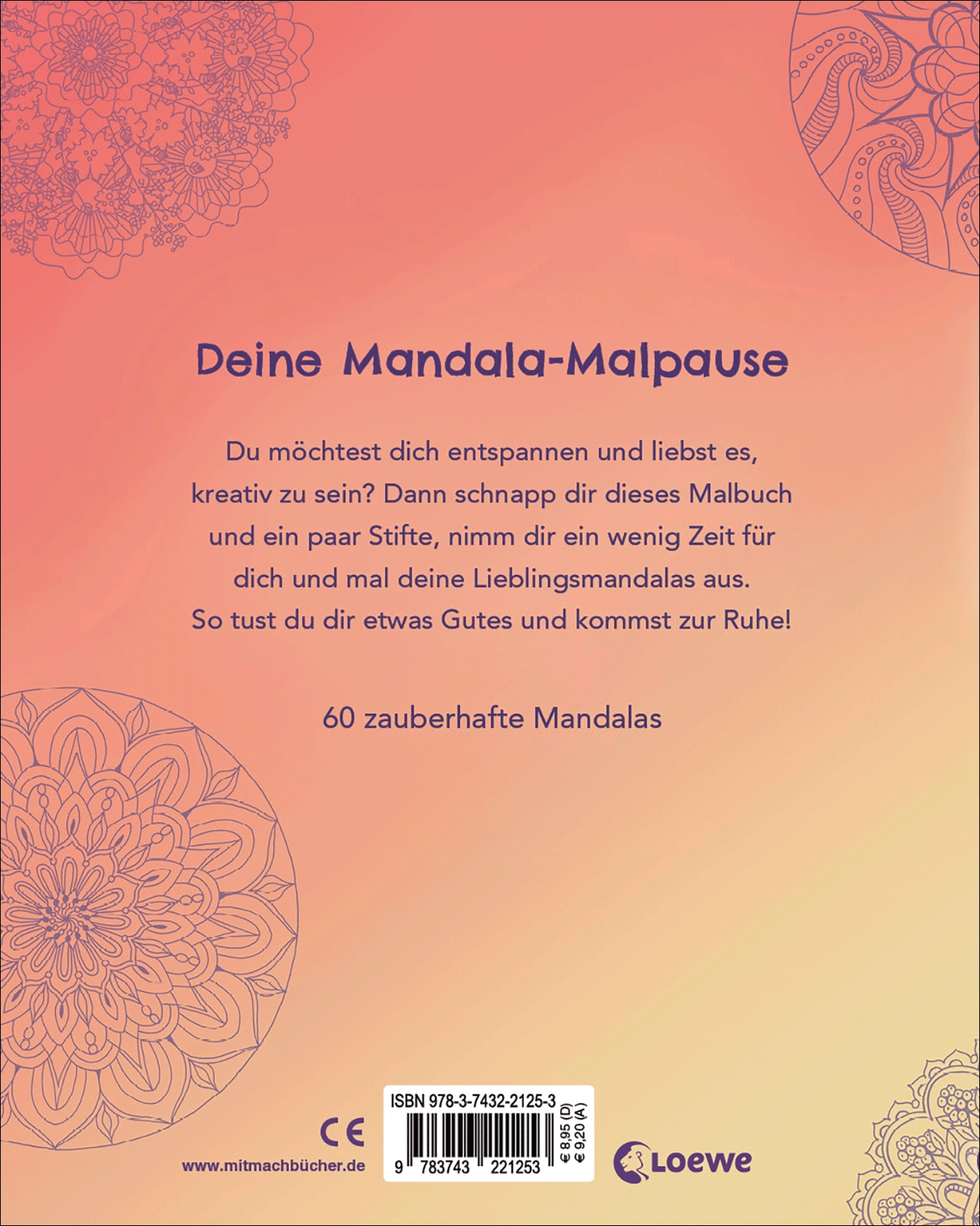 Du möchtest dich entspannen und liebst es, kreativ zu sein? Dann schnapp dir dieses Malbuch und ein paar Stifte, nimm dir ein wenig Zeit für dich und mal deine Lieblingsmandalas aus. So tust du dir etwas Gutes und kommst zur Ruhe!