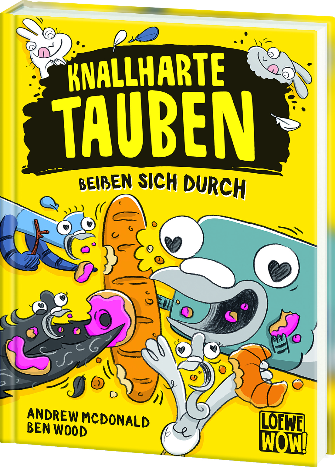 Ach du dicker Krümel! Ein unheimliches Brotmonster treibt vor der Bäckerei sein Unwesen. Noch dazu hat die neue Bürgermeisterin alle Vögel aus der Stadt verbannt – hinter jeder Ecke lauern nun hinterlistige Vogelfänger! Auf den Straßen hoppeln zudem überall flauschig-fiese Kaninchen herum und klauen den Vögeln die leckersten Brotkrumen … Das können die Knallharten Tauben nicht zulassen!