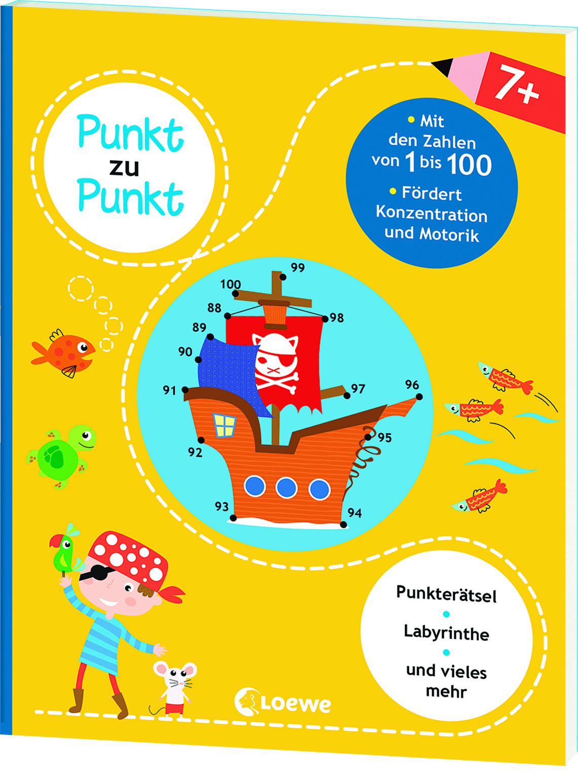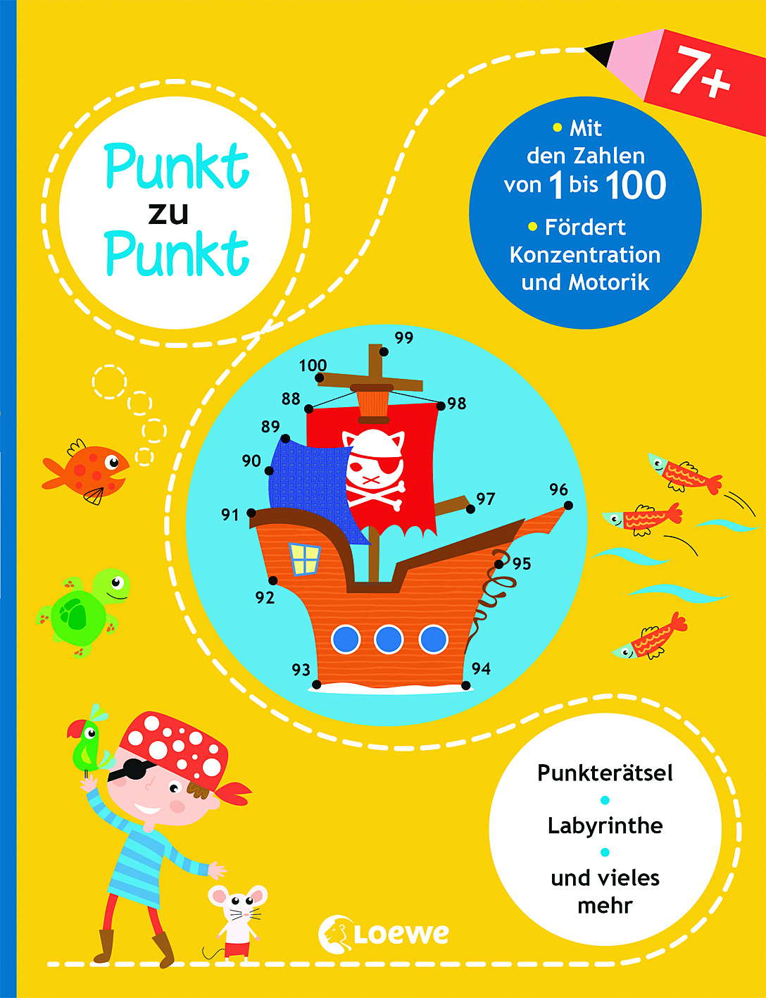 Hier warten kunterbunte Punkterätsel darauf, von Kindern ab 7 Jahren gelöst zu werden. Von Punkt zu Punkt lassen die kleinen Rätselmeister versteckte Bilder auf den Seiten erscheinen – und lernen so ganz nebenbei die Zahlen von 1 bis 100. Durch die modernen, farbenfrohen Illustrationen und weitere abwechslungsreiche Spiele wie Labyrinthe oder Ausmalbilder kommt garantiert keine Langeweile auf!