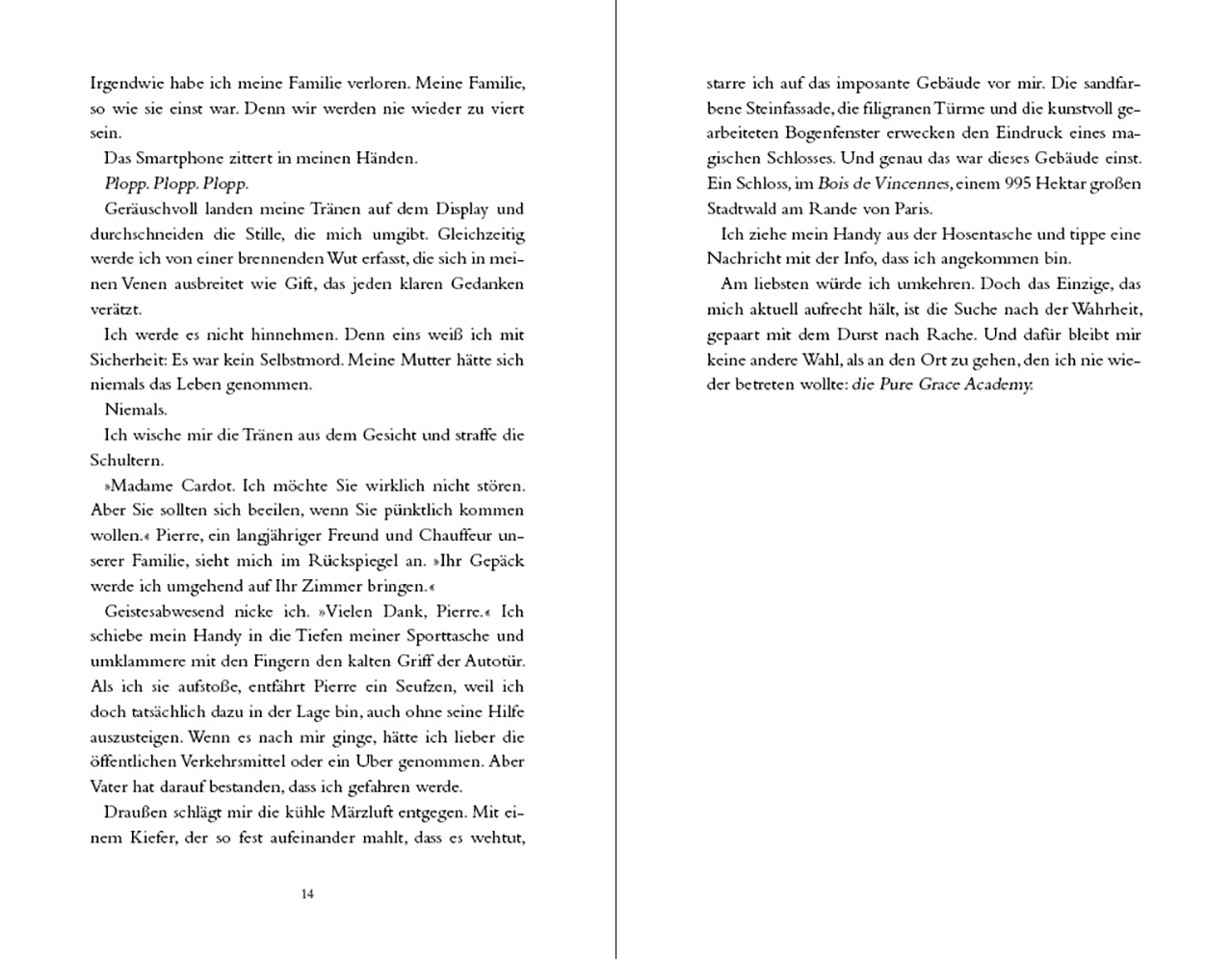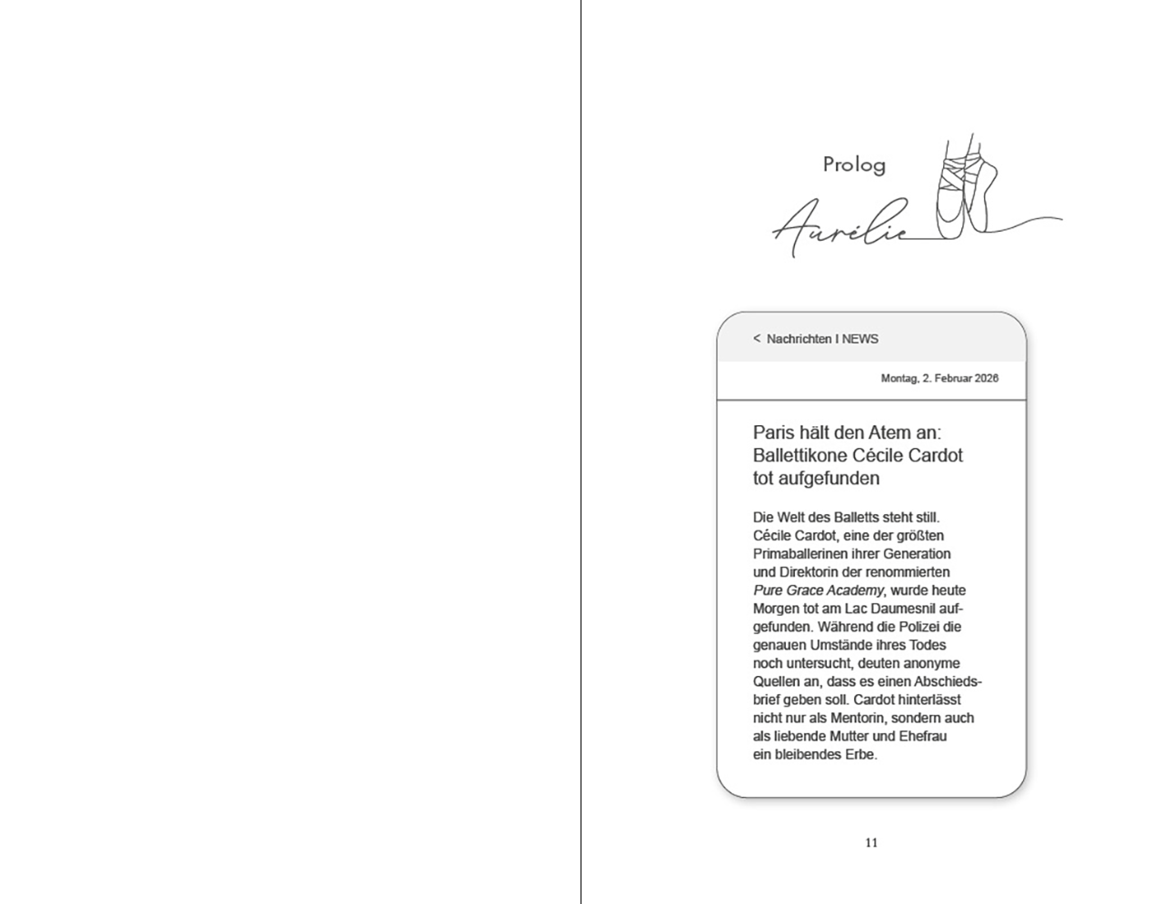 Aurélie ist zurück an der Pure Grace mit nur einem Ziel: den Tod ihrer Mutter aufzuklären. Cécile Cardot, gefeierte Primaballerina und Gründerin der angesehenen Ballettakademie in Paris, soll sich das Leben genommen haben – doch ihre Tochter sieht das anders. Zurück in einer Welt, deren scheinbarer Perfektion Aurélie einst abgeschworen hatte, versucht sie, die Scherben ihrer Familie wieder zusammenzufügen. Dort trifft sie auf ihren ehemals besten Freund Lucian, von dem sie seit ihrem Weggang kein einziges Wort gehört hat. In den smaragdgrünen Augen des Klavierspielers regen sich Gefühle, die auch sie jahrelang verleugnet hat. Doch ihr gemeinsamer Pas de Deux bringt nicht nur seine Fassade zu Fall. Hinter den makellosen Gesichtern des Balletts tanzen noch immer die dunklen Schatten der Vergangenheit, bis der letzte Vorhang fällt – und Aurélie mit ihm.
